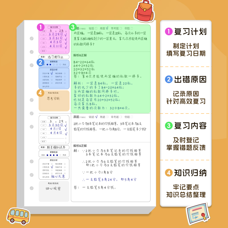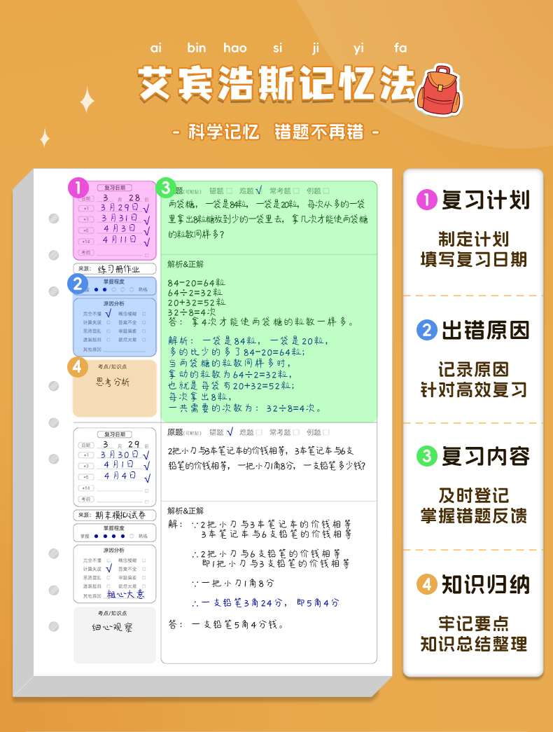 咕咕鸠艾宾浩斯记忆法活页可拆卸亲子作业纠错改错学习学生错题本